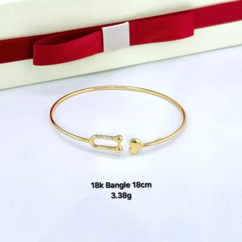 18k Gold Minimal Heart Bangle – Open Design (18cm, 3.38g)